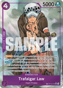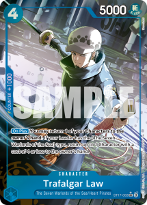 Law's Room abilities create visually distinctive cards. His alliance with Luffy provides crossover card opportunities. Corazon flashback cards are emotional collectibles.